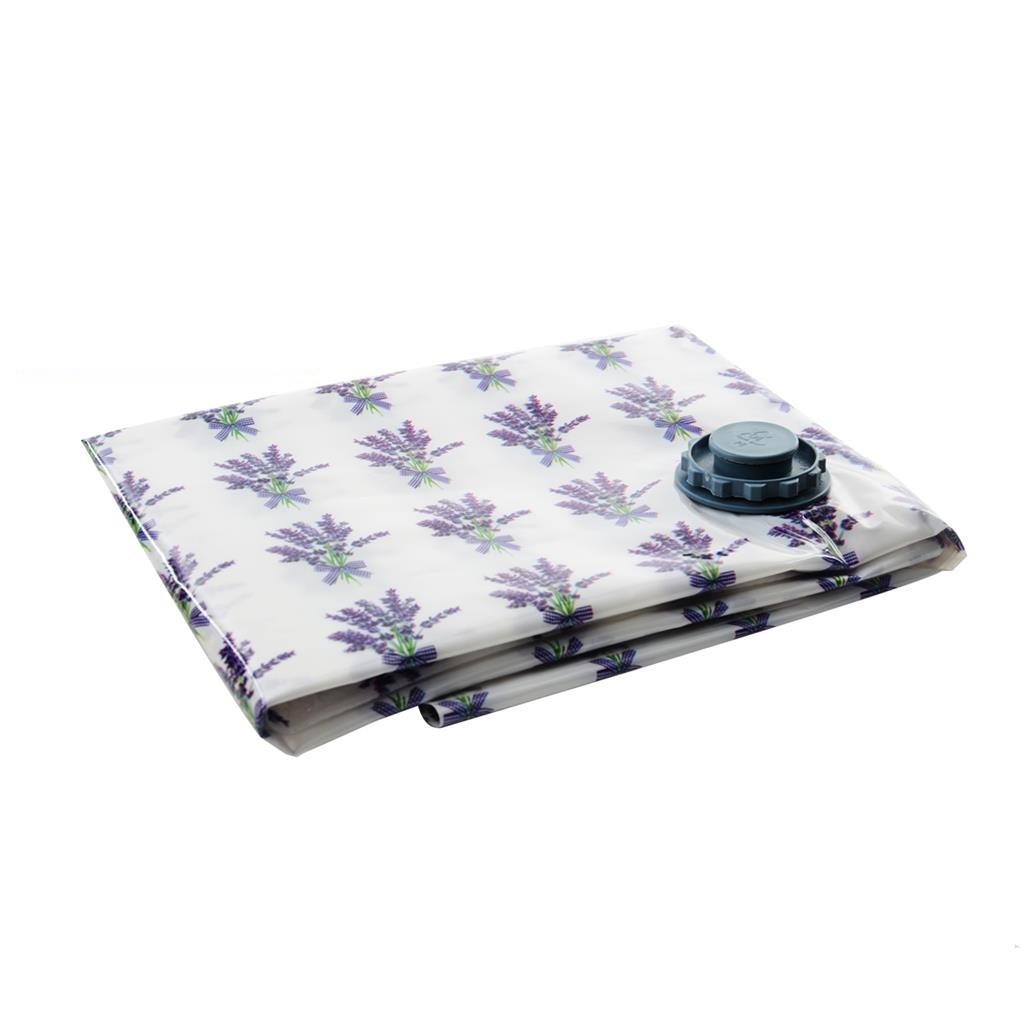 Odsávací vak je vhodný pre uskladnenie sezónnych odevov, lôžkovín, textilných i plyšových hračiek. Po odsatí vzduchu z vaku pomocou vysávača alebo pumpičky na odsávanie vakov sa objem vaku zmenší a Vy ušetríte miesto na ukladanie. Odevy zároveň chránite pred roztočmi, moľami i prachom. Vak je parfumovaný vôňou levandule.