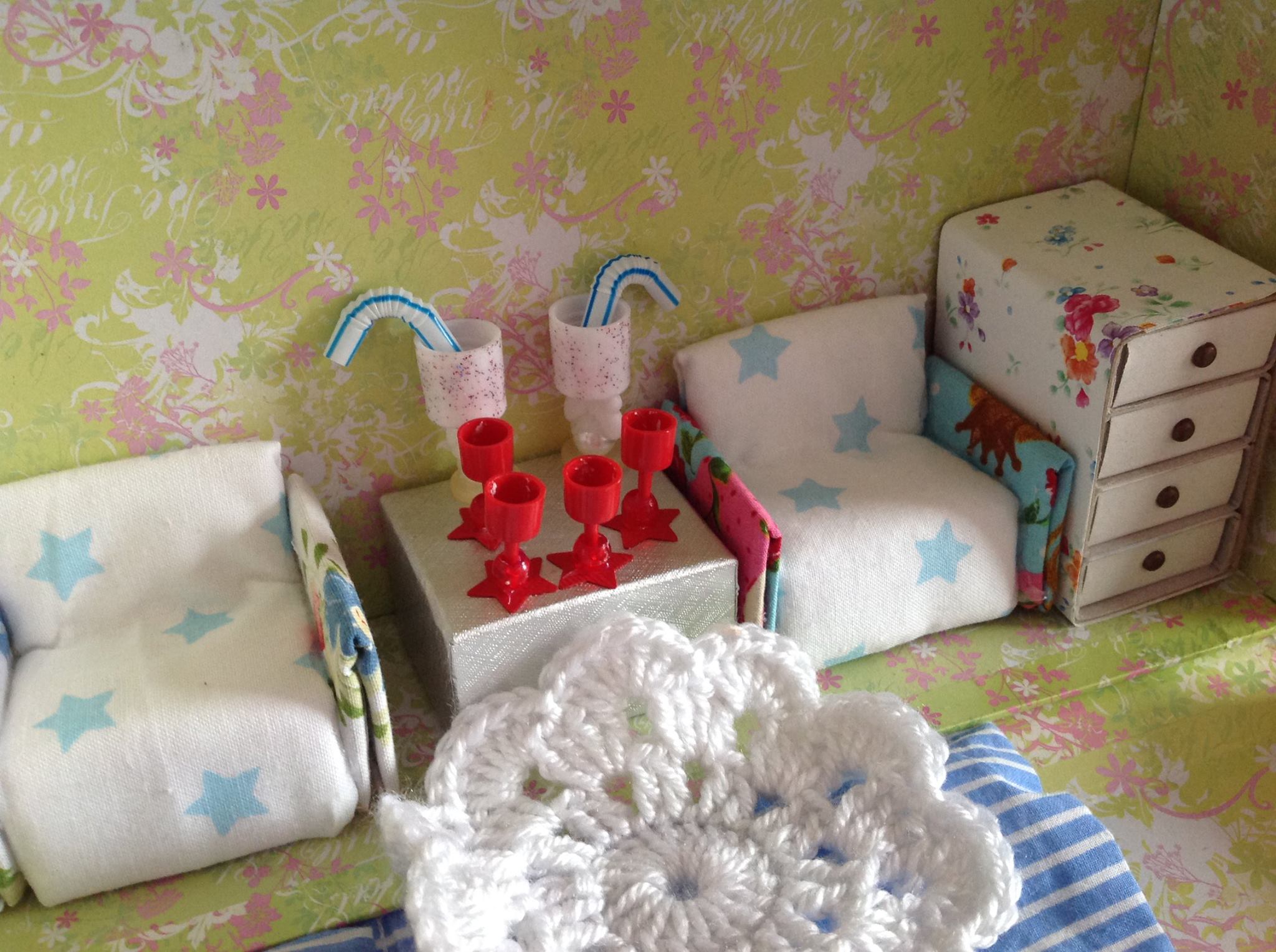 Často sa do výroby domčeka pre bábiky pustí mama s dcérkou, menší domček z krabice alebo papierového kufríka alebo väčší z regálikov. Na youtube je veľa návodov na výrobu nábytkov, tak ak máte k tvoreniu vzťah, pustite sa do toho. My sme domček urobili z regálov, použili sme samolepiace tapety, na nábytky kartón, všelijaké vrchnáčiky, zápalkové škatuľky, koláčiky dcérka urobila z fima, veľkým pomocníkom je tavná pištoľ a tyčinkové lepidlo.